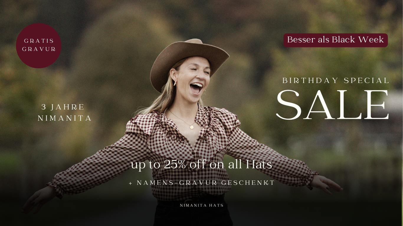 Nimanita ist Dein Label für exklusive Hüte und Accessoires aus Köln, geschaffen für starke, stilbewusste Frauen. Wir vereinen den modernen Boho Stil mit den traditionsreichen Farben und Formen Mexikos. Kein Hut für eine Saison, sondern für all deine Abenteuer. Wir legen großen Wert auf Qualität und achten auf den Fußabdruck den wir in dieser Welt hinterlassen. Unsere Damenhüte werden streng limitiert und in Handarbeit in familiengeführten Manufakturen in Italien, Spanien und Portugal hergestellt, dies garantiert höchste Qualität und eine außergewöhnliche Verarbeitungsweise.