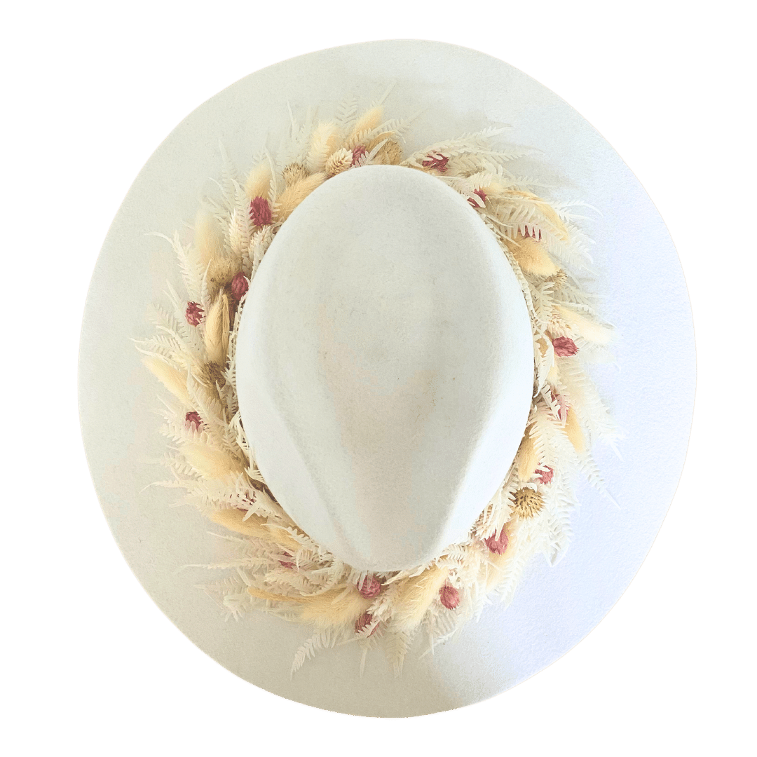Ob für Deinen Brauthut, für das nächste Festival oder für einen Girls Trip, mit diesem wunderschönen Trockenblumenkranz für deine Hut Krone bist Du der Star.